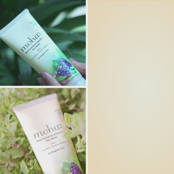 moha: Niacinamide & Vitamin C Face Wash targets dark spots, tan, dullness, and dehydration. Powered with Encapsulated Vitamin C that melt and activate when rubbed gently on skin, Niacinamide, Licorice & Cucumber, this face wash visibly brightens and refreshes your skin while strengthening the barrier and retaining skin’s natural moisture.