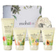 Your Abhyanga Kit contains: moha: 5 in 1 Hair Oil, moha: Rejuvenating Massage Oil, moha: Herbal Scrub Soap & moha: Rose & Almond Soap.