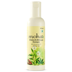 moha: Shikakai & Bhringraj Shampoo is your natural answer to hair fall and scalp fatigue. Enriched with Bhringraj to reduce breakage, Shikakai for nourishment, and Hemp Seed Oil to deeply hydrate, The result? Less breakage, more volume and hair that stays on your head – not on your comb.